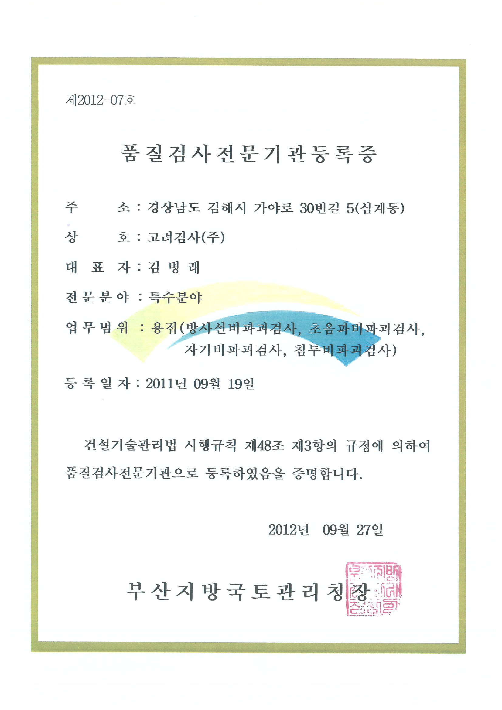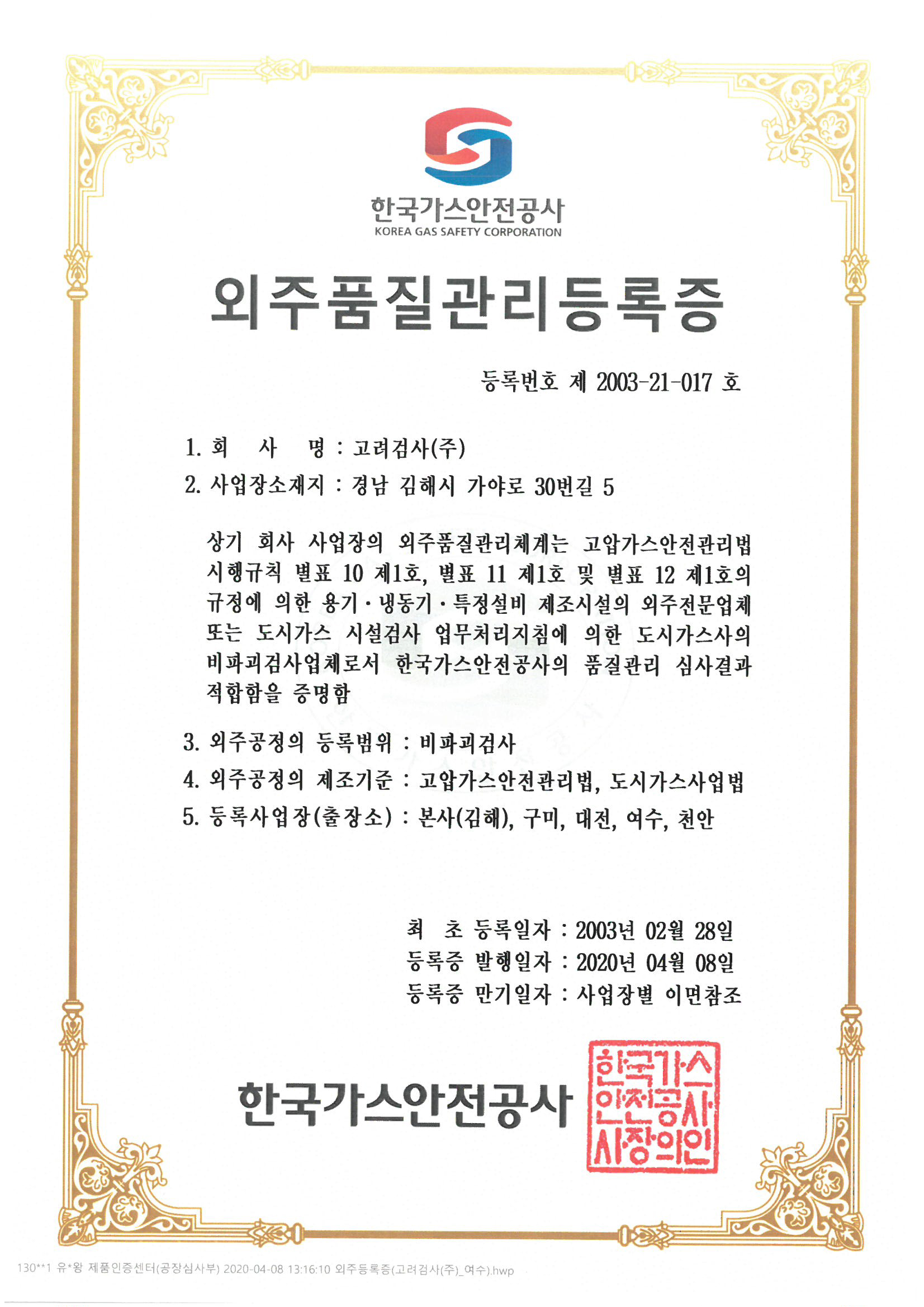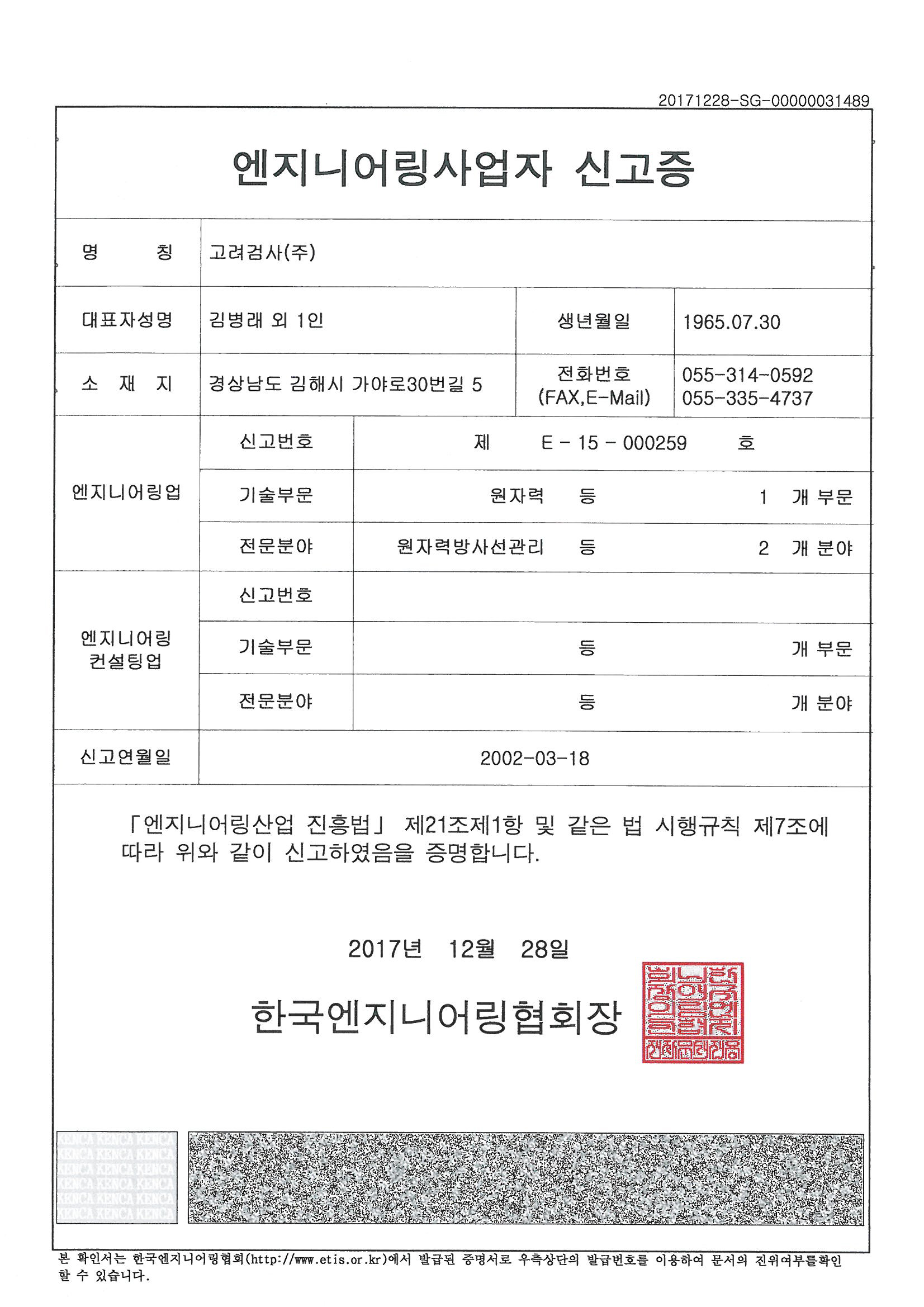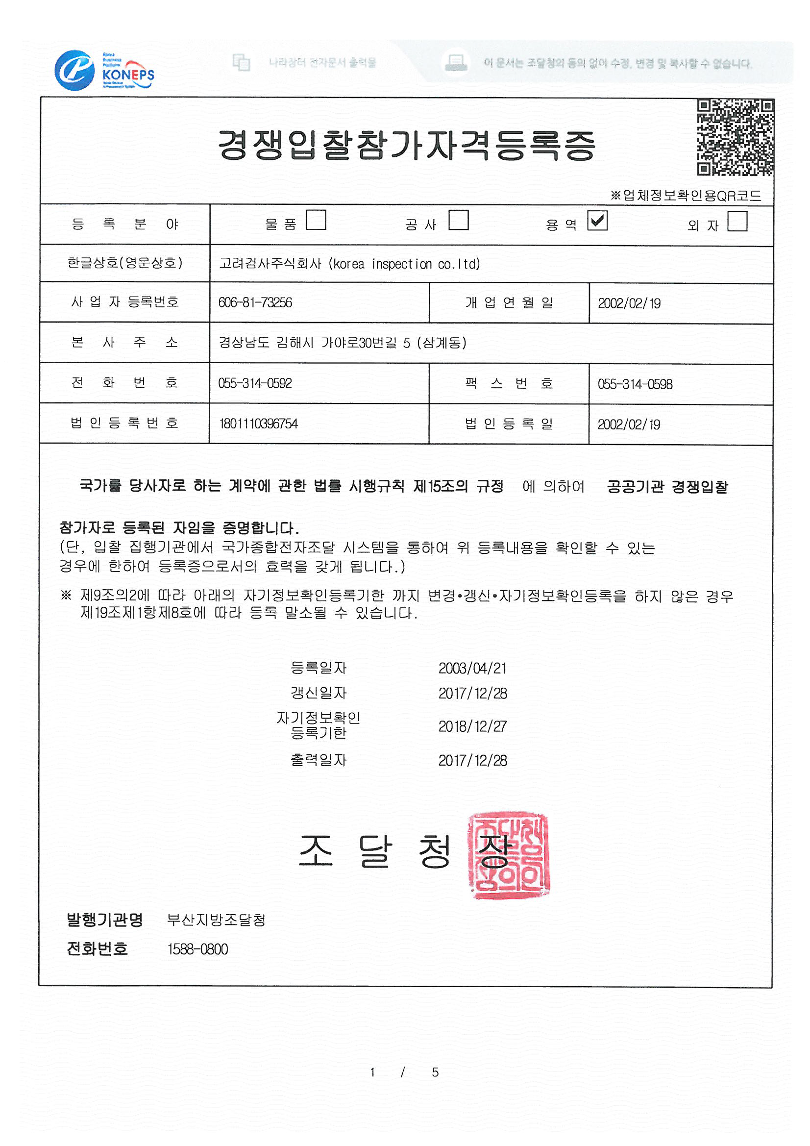 유자격공급자 등록증-가동전,중 검사 용역(배관,기기,구조물)