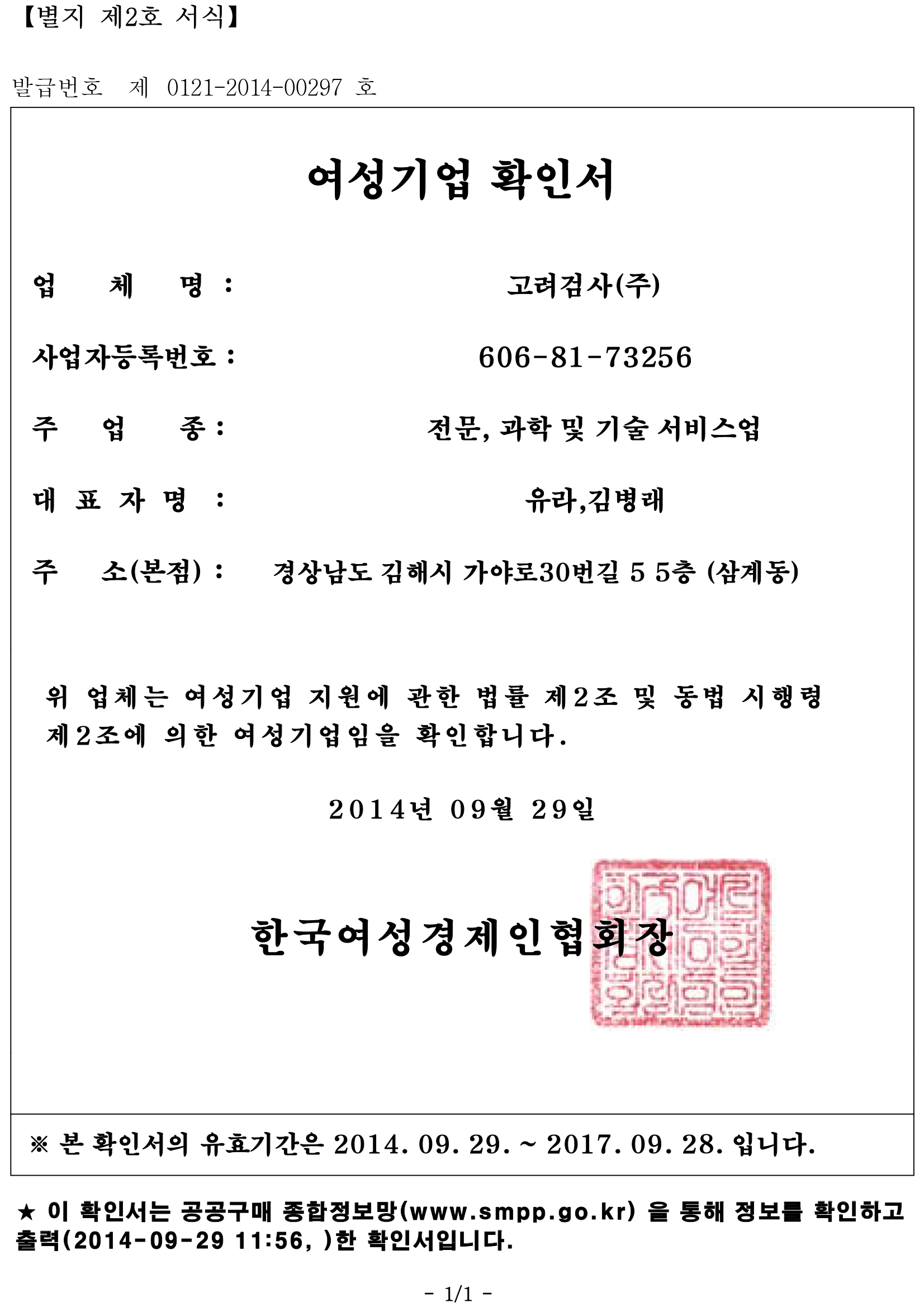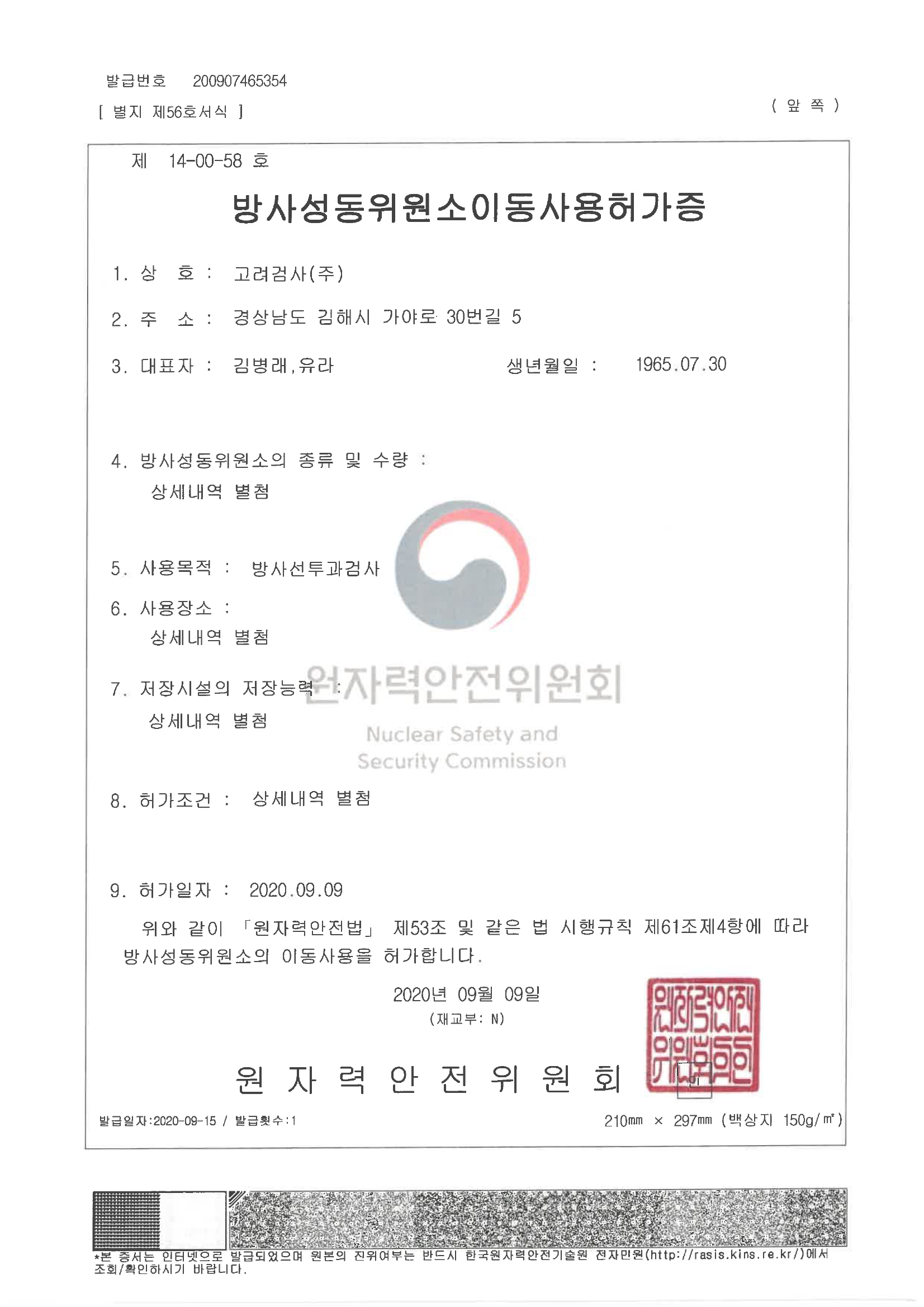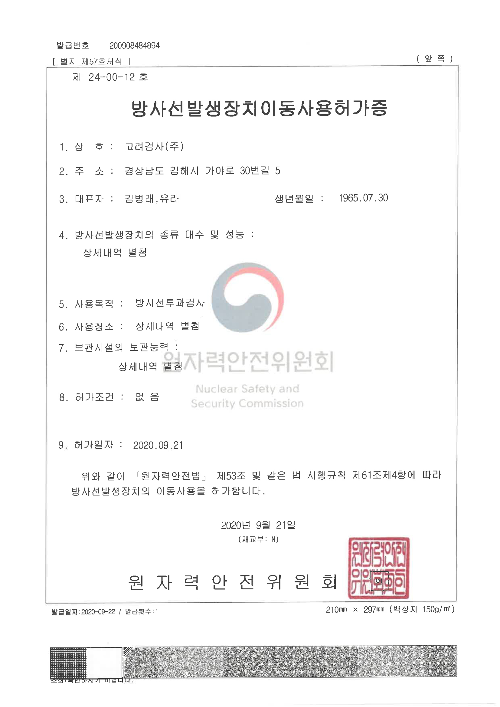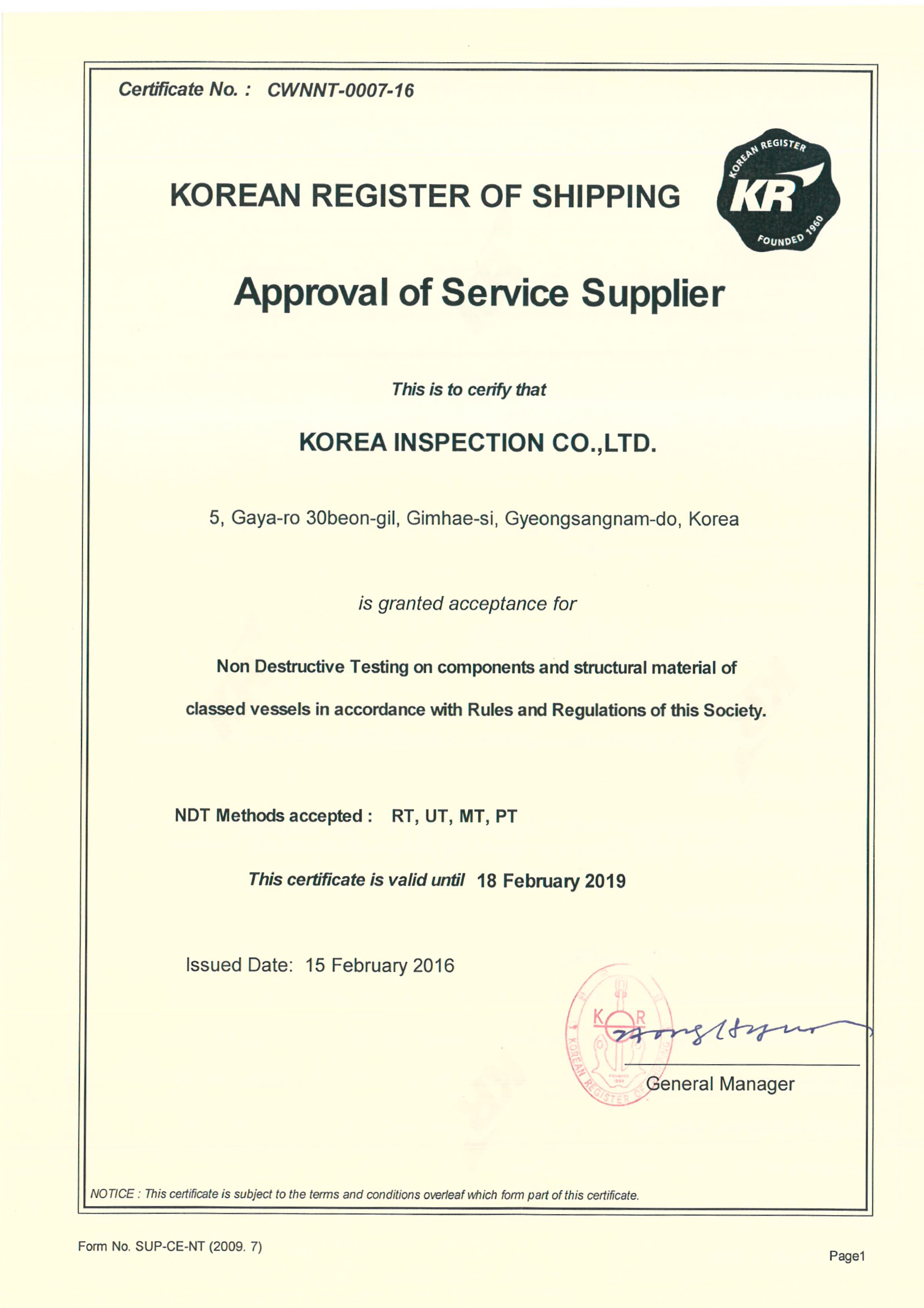 유자격공급자 등록증-가동전,중 검사 용역(배관,기기,구조물)
