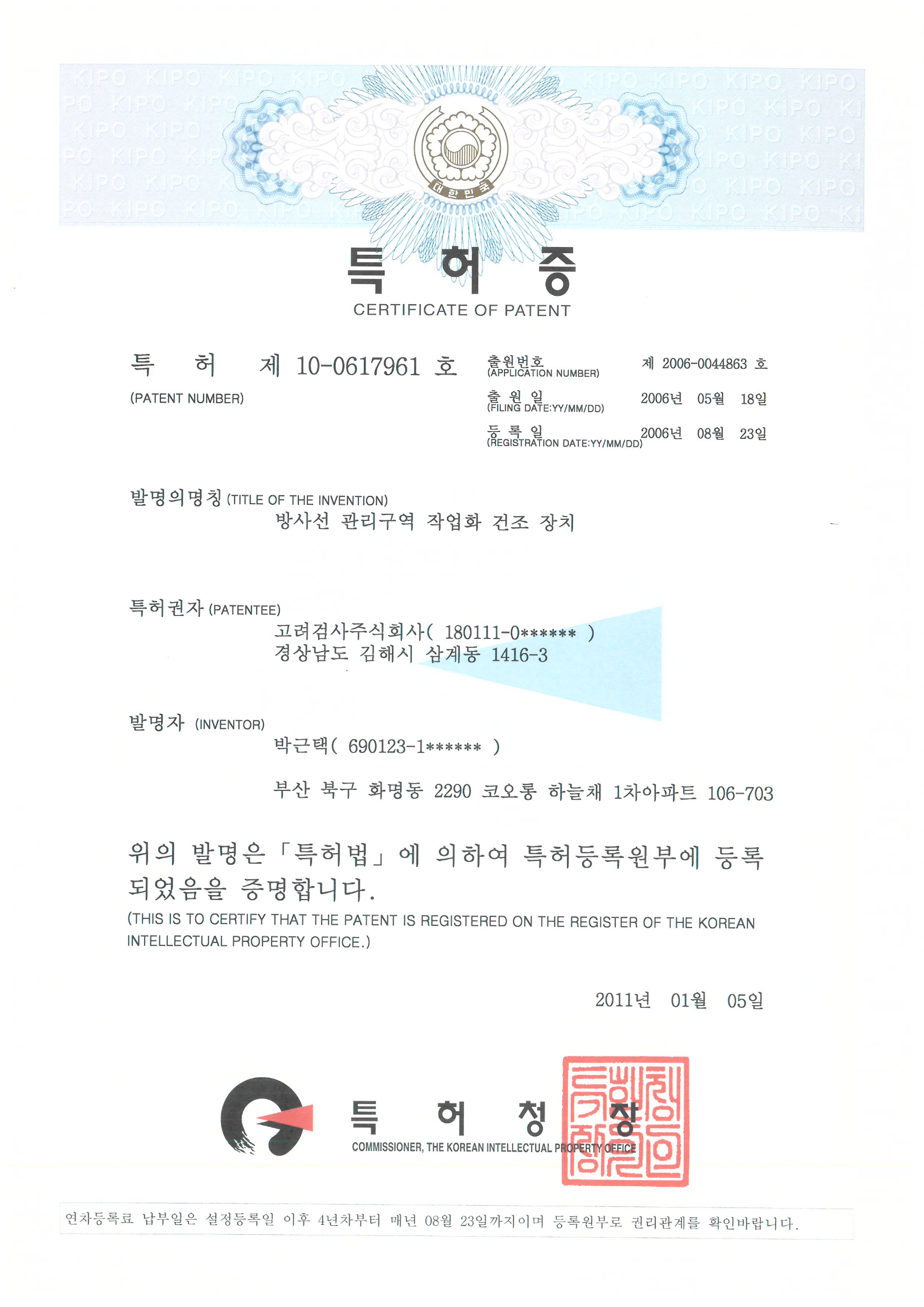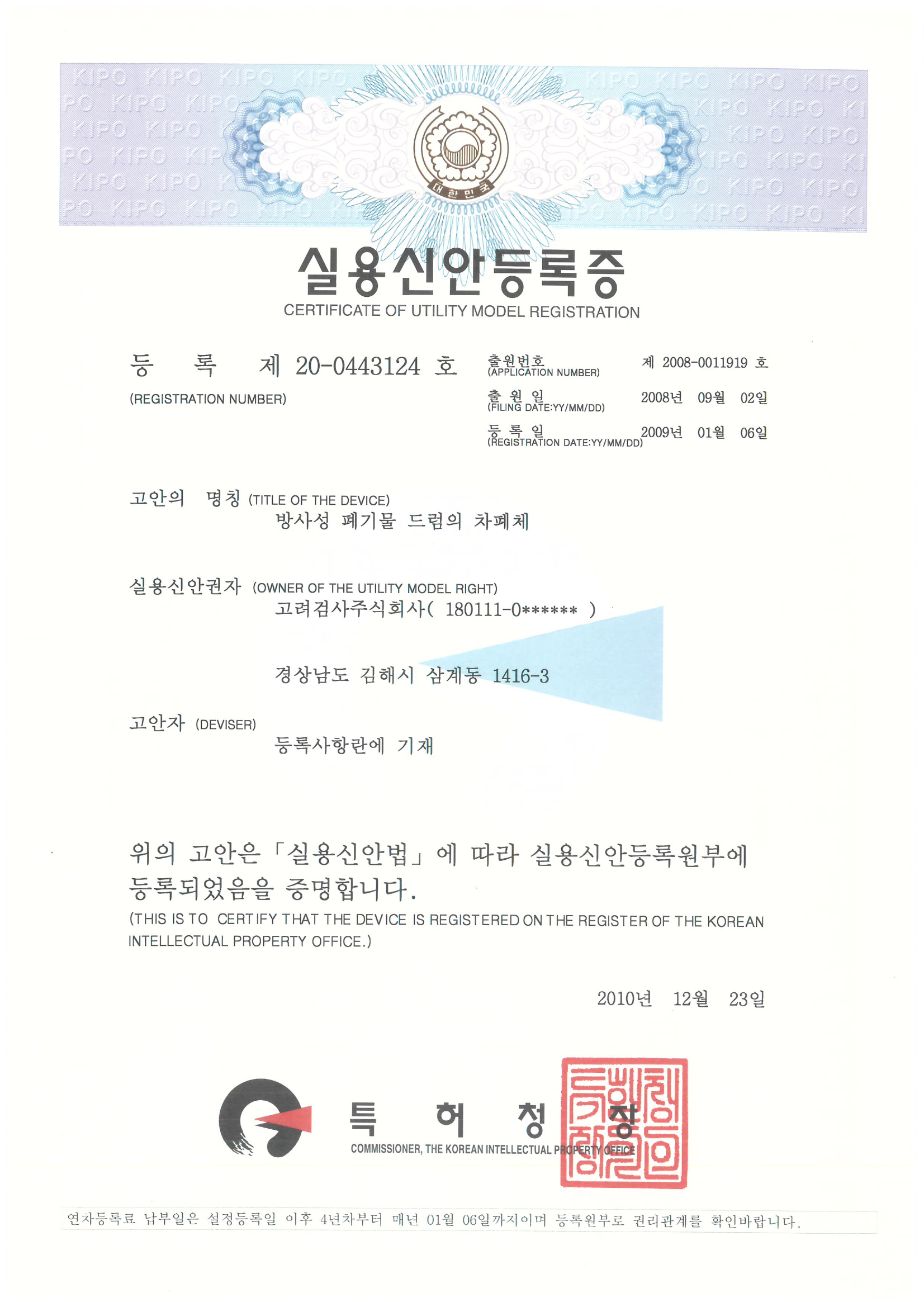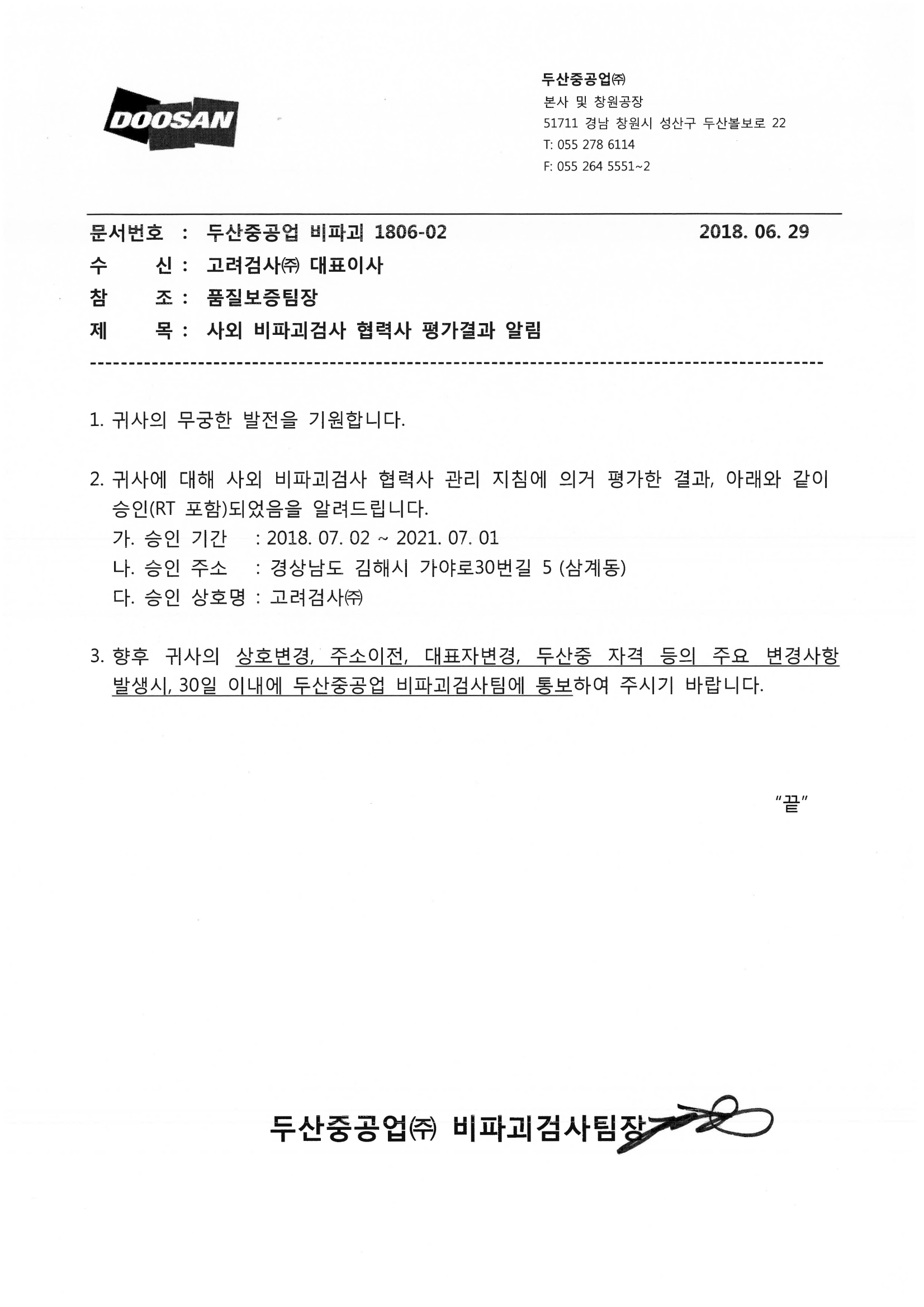 유자격공급자 등록증-원자로헤드관통관 육안검사
