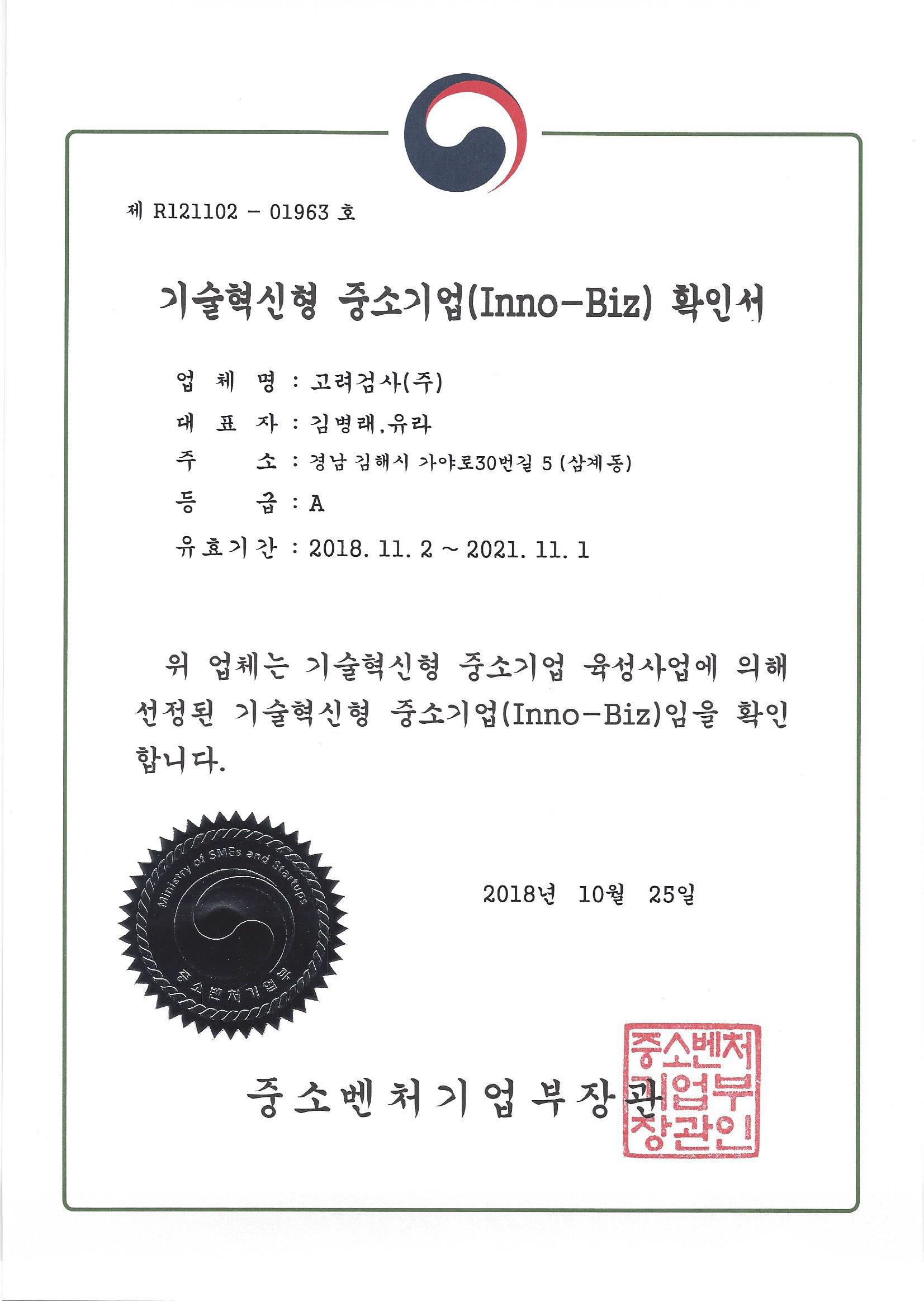 기술혁신형 중소기업(INNO-BIZ)확인서
